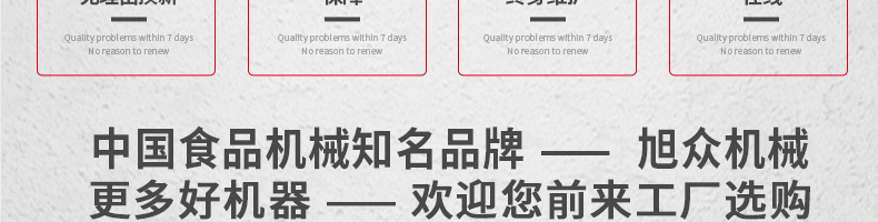 廣州旭眾食品機(jī)械有限公司是一家集科研開發(fā),生產(chǎn)設(shè)計,營銷服務(wù)為一體的現(xiàn)代化生產(chǎn)企業(yè)?,F(xiàn)代化生產(chǎn)車間,精湛制造技術(shù),所產(chǎn)機(jī)械歷經(jīng)市場重重考驗,不斷贏得海內(nèi)外客戶的贊譽(yù)。