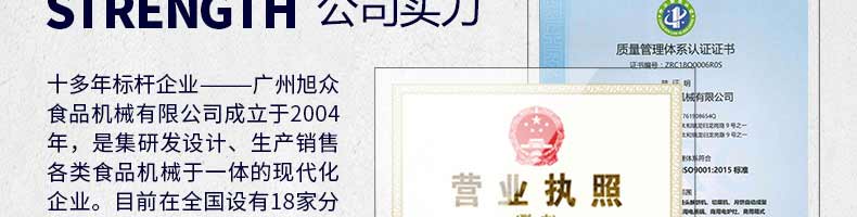 廣州旭眾食品機械有限公司是一家集科研開發(fā),生產(chǎn)設(shè)計,營銷服務(wù)為一體的現(xiàn)代化生產(chǎn)企業(yè)。現(xiàn)代化生產(chǎn)車間,精湛制造技術(shù),所產(chǎn)機械歷經(jīng)市場重重考驗,不斷贏得海內(nèi)外客戶的贊譽。