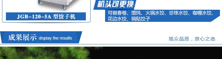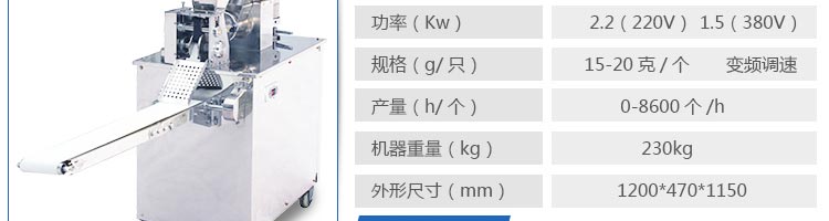 JGB-120-5A型輸送帶餃子機,本機是一款可生產(chǎn)各種肉餡、肉菜混合餡、全菜餡及其他種餡餃子的設(shè)備。一機多用途,只要更換模具,就可制作不同的食品,如春卷、餛飩、咖喱角、鍋貼等。適用于賓館、飯店、餐廳、團(tuán)體食堂加工,幼兒園、速凍餃子生產(chǎn)。