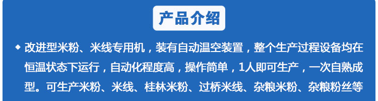 SZ-350多功能米粉機(jī),生產(chǎn)多樣性可生產(chǎn)米粉、米線、粉絲、粉條、、年糕、玉米面條、各種雜糧粉絲、各種面條、雜糧面條、彩色面條以及以紅薯、玉米、大豆、蠶豆等制成淀粉為原料的等多種食品而且每種食品厚薄、粗細(xì)等規(guī)格可根據(jù)需要任意調(diào)整。