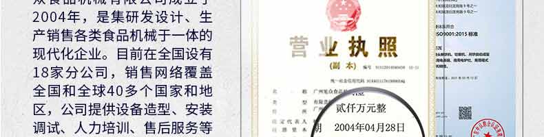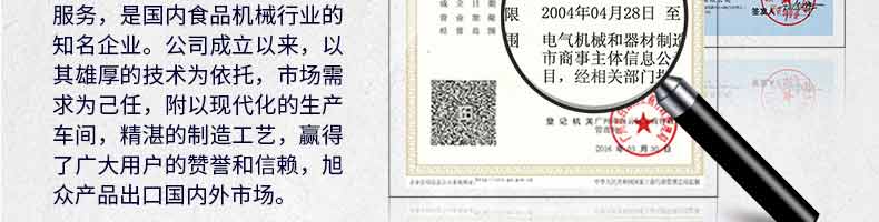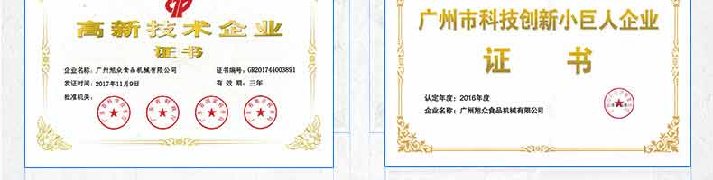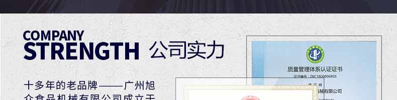 廣州旭眾食品機械有限公司是一家集科研開發(fā),生產設計,營銷服務為一體的現(xiàn)代化生產企業(yè)?,F(xiàn)代化生產車間,精湛制造技術,所產機械歷經市場重重考驗,不斷贏得海內外客戶的贊譽。
