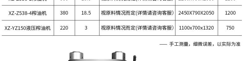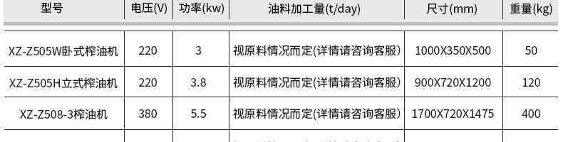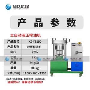 名稱XZ-YZ150型液壓榨油機 電源220v 功率3kw 產(chǎn)量9kg/次 尺寸1100*700*1320mm 重量700kg 規(guī)格 其他